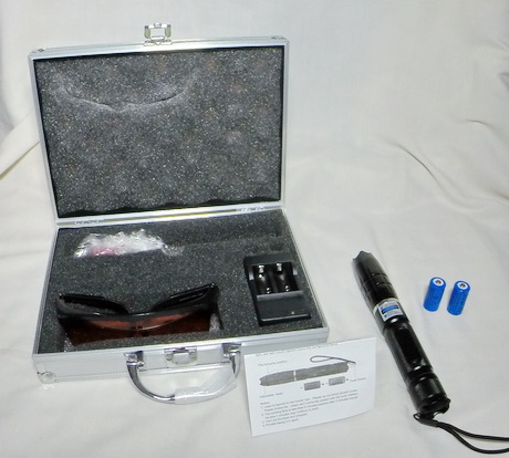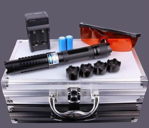 High Power 445nm Focus Visible Blue Beam Laser Pointer Pen Boxset with 5 Caps...